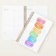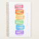 This charming macaron planner journal features the image of an asymmetric stack of 6 rainbow-coloured macarons with her name orientated vertically to the right of the macaron stack - by katz_d_zynes
