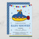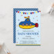 Invite your guests with this cool baby shower invitation featuring a cute submarine with simple typography against a light blue background. Simply add your event details on this easy-to-use template to make it a one-of-a-kind invitation. Flip the card over to reveal a blue and white stripes pattern on the back of the card.