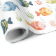 This colourful wrapping paper features vibrant cartoon tropical fish with happy expressions, swimming among seaweed, coral, and bubbles. The charming mix of blues, yellows, reds, and greens brings a cheerful, aquatic vibe to any setting.