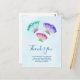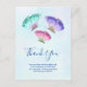 Thank you postcard with a delicate feminine design. 3 watercolor butterflies, painted pink, purple and green. A light blue watercolor background with hints of light pink.