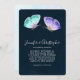 Wedding invitation with a delicate romantic design. 2 watercolor butterflies, painted, purple and green. Dark blue watercolor background.