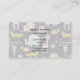 Business card template with a pattern composed of a collection of cute wild animals in a nursery art style - including alligators, monkey, birds, turtles, giraffes, elephants and lions all drawn in pastel colours. Set on a brown background. Adorable design for businesses with a children's theme such as childcare, party planning, handmade clothing etc...