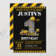 Fun construction theme 1st birthday party invitation, change the text to anything you want when you order