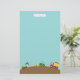 Boys who love construction vehicles, toys and machines are going to love this stationery design that has lots of construction theme elements like a cute red and yellow dump truck carrying the debris, an orange excavator, a green front loader pushing dirt, orange and white cones. Text memo is in a screw like font that is in line with the theme.