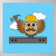Cute Construction Worker Owl with Hard Hat Cartoon Poster