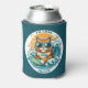 Funny can cooler featuring a cute ginger kitty on a surf board. Perfect for a cat lover or surfer