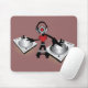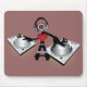 Funky custom taupe mousepad / mousemat with a cute and cool Eiffel Tower DJ cartoon character with a big red heart, headphones and spinning vinyl records on two decks - www.vectoropenstock.com - The background colour is customisable - lots of colours to choose from. You can also personalise it with some text if you like - lots of fonts and colours to choose from. A groovy original gift for music lovers.