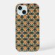Cute Cool Glossy Orange Blue Retro Flower iPhone 15 Case