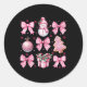Cute Coquette Christmas Pink Bows Santa Gingerbrea Classic Round Sticker