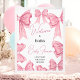Welcome guests to your baby shower with this adorable Coquette Pink Bow Welcome Sign. Featuring a playful arrangement of hand-drawn pink bows, this sign sets a chic and feminine tone for your celebration. The soft blush tones and elegant typography make it perfect for a festive or holiday-themed baby shower. Personalise it with the bride's name and event date for an extra special touch, creating a stylish and inviting atmosphere.