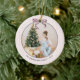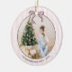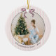 Cute Coquette Pink Bow Photo Christmas Ceramic Ornament.