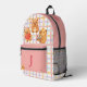 Cute Capybara printed backpack with whimsical watercolor capybaras and a vintage pastel crisscross pattern in the background. The highlight color is CORAL PINK with DARK PINK typography. Along the top edge there is a CUSTOMIZABLE NAME and the front pocket has a CUSTOMIZABLE MONOGRAM. Ideal for capybara lovers and for Back to School gifts. This would make a great new mom gift to use as a diaper bag. Also in other colors. Matching stationery, party supplies and apparel available.