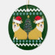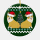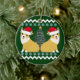Adorable Pembroke Welsh corgi holiday snowflake ornament gift for an Ugly Christmas party. Features 2 adorable dogs wearing Santa hats under pretty blue snowflakes and a Christmas tree.