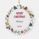 Here's a cute personalised ornament for anyone who loves a Corgi Dog. The front has a beautiful watercolor image of a Corgi wearing an red and white Santa Claus hat. The dog portrait is framed within a colourful circle wreath made up of various Holiday images, including a snowman, bells, candy cane, stocking, holly, and more! The back of the ornament has the same wreath image with a Christmas and New Year's greeting. Be sure to update the custom text field for the appropriate name and year. And see more Corgi dog images and products at Dog Village.