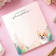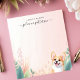 Brighten your day with this adorable, personalised notepad! A cheerful corgi peeks out from behind lush, tropical-inspired foliage and flowers. The soft, pastel background adds a touch of warmth. Add your own custom text to create a unique and fun notepad. Perfect for dog lovers, reminders, or everyday notes.