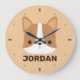 This design features cute little corgi dog cartoon illustration with personalized name in brown modern sans serif font style on light brown background.