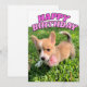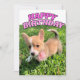 This pretty pink Pembroke Welsh Corgi puppy birthday card features a beautiful puppy under the words Happy Birthday in cute font.