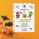 Fall Invitations with this Cute Costume Halloween Party Invitation with fun Halloween Characters and Halloween festive typography that you can easily personalise.