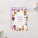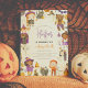 Invite family and friends for a spooktacular time with these cute Halloween birthday party invitations. This design features a hand-painted border of fun Halloween characters, there are kids in costumes, black cats, bats, smiling pumpkins, ghosts, a dancing skeleton, spiders, balloons, stars, magic potions, a heart-eyed skull, a flying broomstick, candy corn and more! Inside the frame, the birthday girl's name appears in big script hand-lettering, with her age and party details below in elegant typography. The colour scheme for the text is a classic Halloween palette: orange, purple, grey, and black! Cards reverse to a pastel purple colour. We have chosen "FIVE" for the template age, but these cards are great for a first birthday party or kids of any age! To customise, simply click on "Personalise this template" and edit the text to feature your own celebration information! If you have any questions, please don't hesitate in reaching out - I'll be happy to help! Just note that I cannot modify an existing order. Browse the collection above or visit my store for more Halloween-themed birthday party invitations.
