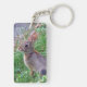 This keychain features a profile photo of a cute cottontail bunny rabbit sitting amid lush green grass. Great gift for any animal lover.