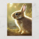 A postcard for wildlife lovers, featuring AI generated realistic digital painting of a cute baby cottontail rabbit near a mountain stream.