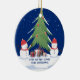 Stay 6 Feet Apart funny Covid snowman social distancing during the holiday pandemic. Keep your loved ones safe and send a cute Christmas ornament during quarantine featuring adorable snowman card with a beautiful Christmas tree set against a snow filled blue sky.