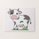 A funny puzzle with a Cute cow on a pink background in cartoon style. This could be a special gift for a child, a farmer or a lover of Kawaii animals.