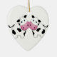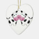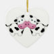 A cute snuggling cow couple on a heart shaped Christmas ornament