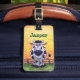 Love cows and love to travel, then you need our Animal Parade Cow Personalised Front and Back Luggage Tags featuring a our original art of a cute black and white cow standing in a grassy field with a yellow, orange sky digitally painted by our talented children's book artist, Traci Van Wagoner. On the front with your name is the funny cow from the front, and on the back you'll find the cute Holstein cow's tail with all your customised information. Join the Animal Parade and buy an Animal Parade Cow today. Great gifts for cow lovers of all ages.