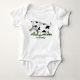 Cute cow in green field cartoon illustration baby bodysuit