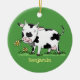 Cute cow in green field cartoon illustration ceramic tree decoration