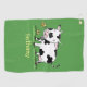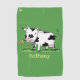 Cute cow in green field cartoon illustration golf towel