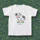 A funny T-shirt with a Cute Cow in Cartoon style. This design is fitting if you are looking for a gift to a child who loves farm animals! Customise it with name of your kid. It comes with a cute cow face on the back!