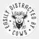 Show off your love for cows with our "Easily Distracted By Cows" sticker! This funny and adorable design is perfect for cow lovers and fans of cute animals. Great for decorating laptops, water bottles, notebooks, and more, this sticker is a delightful way to bring a smile to everyone's face. Ideal for farmers, animal enthusiasts, and anyone who can't resist the charm of cows.