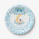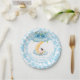 Cute Cow Over The Moon Blue Baby Shower Paper Plate