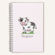 A funny pink Notebook for students, teachers or home recipes with a cute cow on grass and a customisable forename. Add your name, and it will be perfect for back to school!