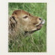 A beautiful cute calf lying in long grass with his tongue sticking out.