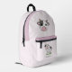 A funny pink backpack for kids with a cute cow on grass and a customisable forename. Perfect for school, work or when you go to the farm!