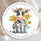 Cute Cow Sunflowers Simple Modern Farm Baby Shower Classic Round Sticker