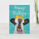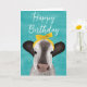 Wish them a legen-dairy birthday with this cute card, or customise the text on the front and the inside with your own custom message. This card features my painted illustration of a cow wearing a yellow bow set against a turquoise blue background.