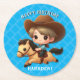 Cute Cowboy and Horse Western Birthday Round Paper Coaster