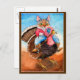Cute cowboy cat riding turkey postcard