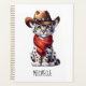 Cute snow leopard with a cowboy hat and scarf personalised planner.