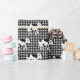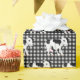 Cute black and white cow pattern on a white and black gingham background.