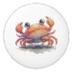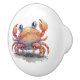A ceramic knob with a watercolor illustration of a very cute crab.