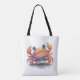 A shoulder tote with a watercolor illustration of a very cute crab.
