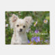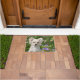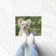 A young long-haired cream white coloured Chihuahua dog sitting in a flowering garden, photo taken by Katho Menden. This doormat - Welcome - is a gift idea for dog lovers. http://www.zazzle.com/kathom_photo - - Personalise it with your name or text. -