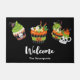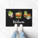 A welcome doormat with a Halloween cupcakes and candy treats. Spooky fun.