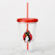 Tumbler with an illustration of a cute crested penguin with a red Santa hat; Christmas holiday cartoon design for kids, editable template design with custom field for your own text, illustrated by Radka Kavalcova
