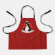 Kids' apron with an illustration of a cute crested penguin with a red Santa hat; Christmas holiday cartoon design for kids, editable template design with custom field for your own text, illustrated by Radka Kavalcova
